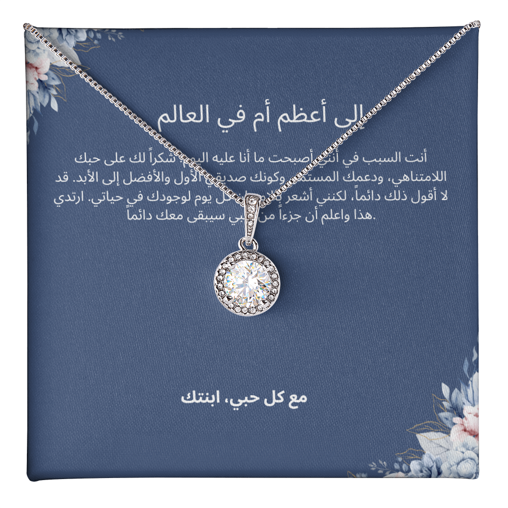 أنت السبب في أنني أصبحت ما أنا عليه اليوم. شكراً لك على حبك اللامتناهي، ودعمك المستمر، وكونك صديقي الأول والأفضل إلى الأبد. قد لا أقول ذلك دائماً، لكنني أشعر بالامتنان كل يوم لوجودك في حياتي. ارتدي هذا واعلم أن جزءاً من قلبي سيبقى معك دائماً.